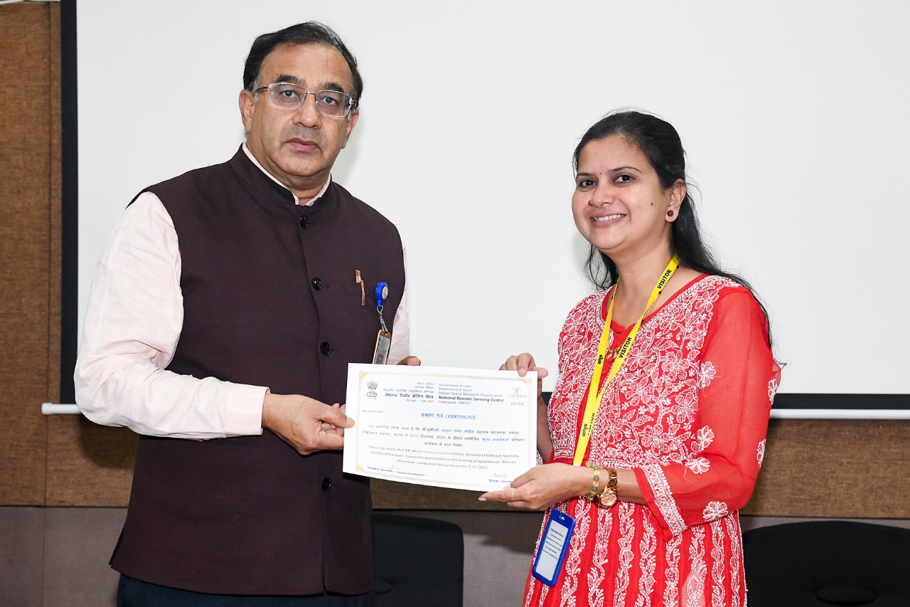 Participation in this prestigious ISRO program reflects Dr. Mohite’s strong commitment to academic excellence, continuous professional development, and the integration of advanced geospatial technologies into teaching and research.