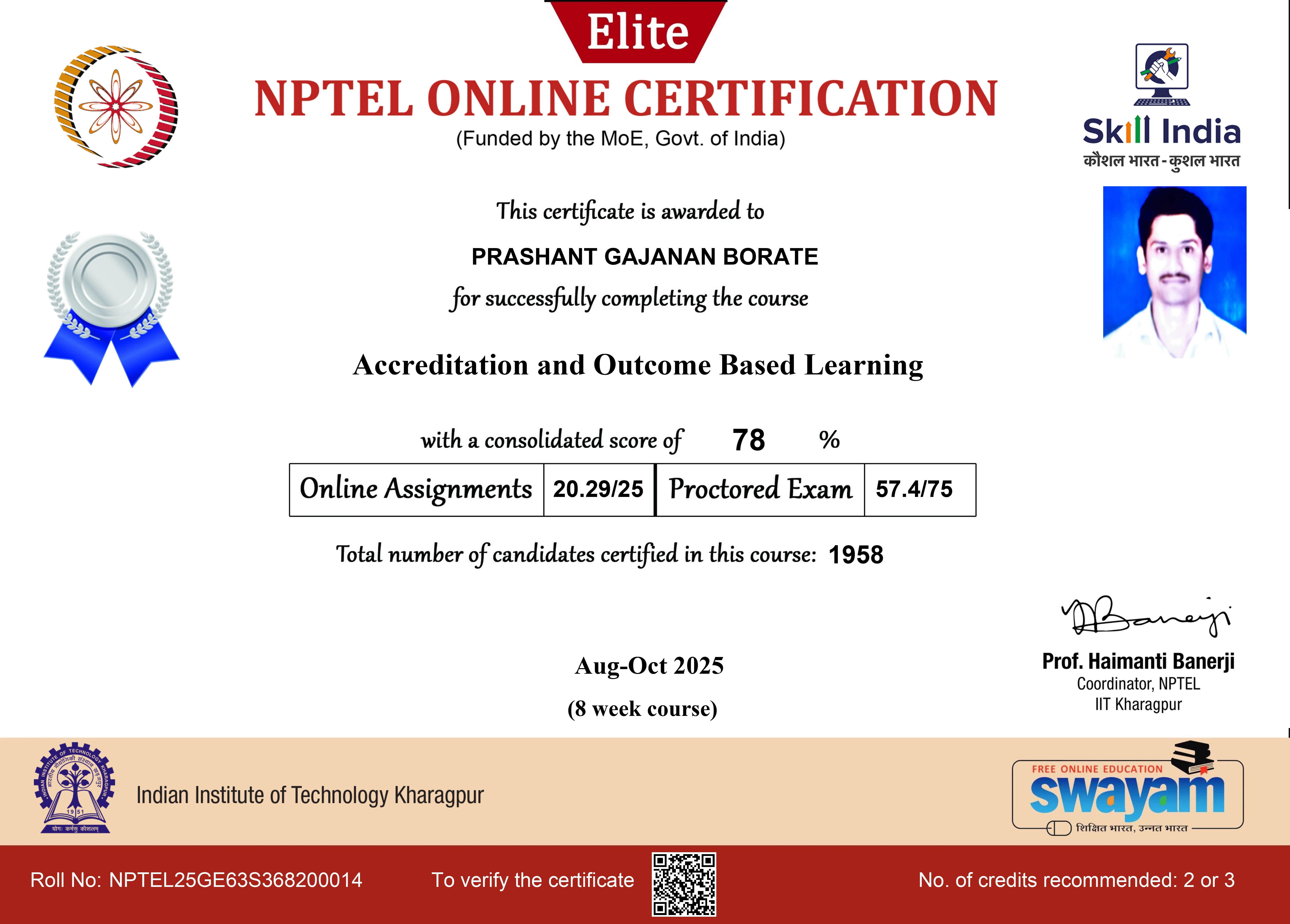 NPTEL Elite + Silver - Accreditation and Outcome Based Learning