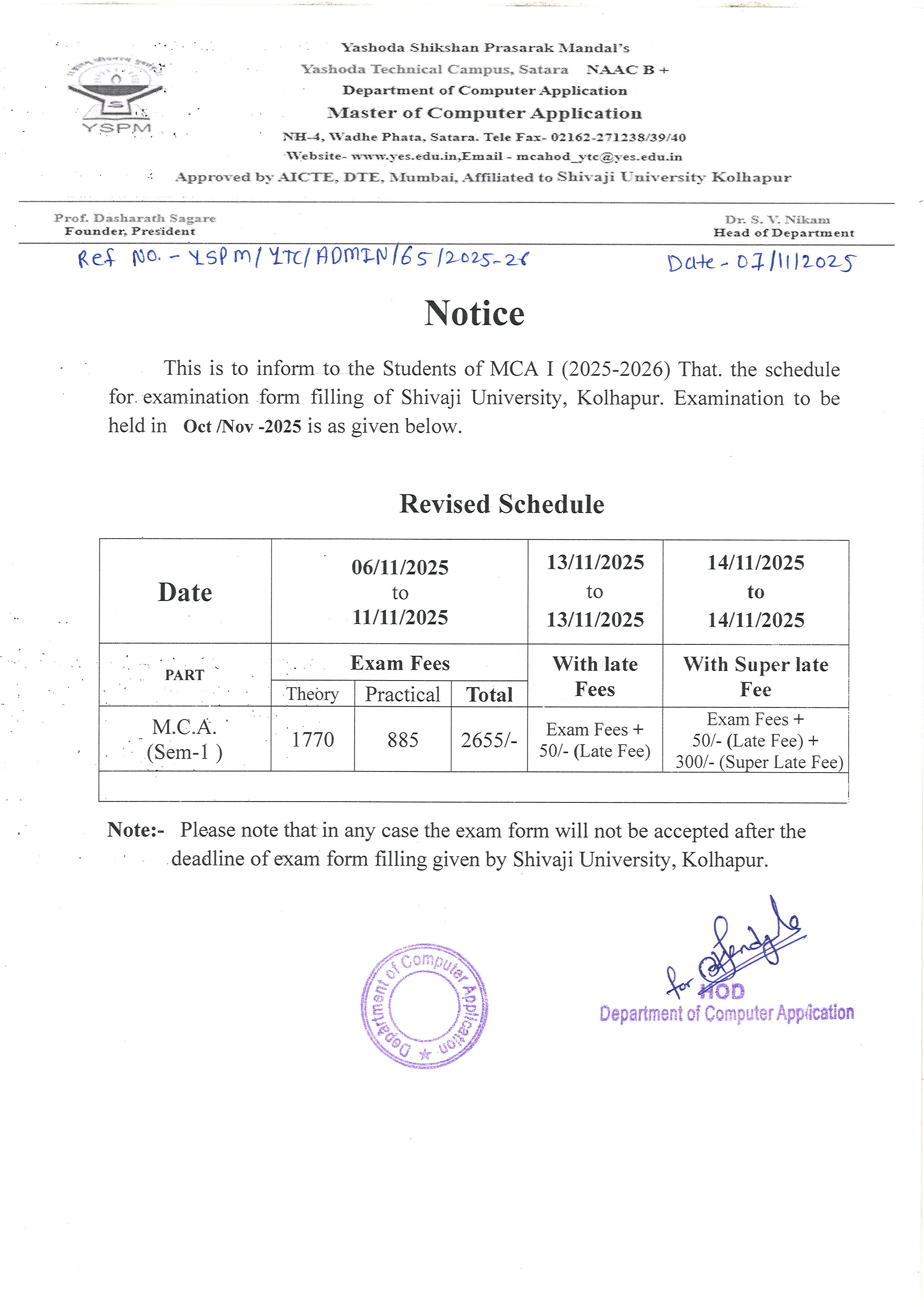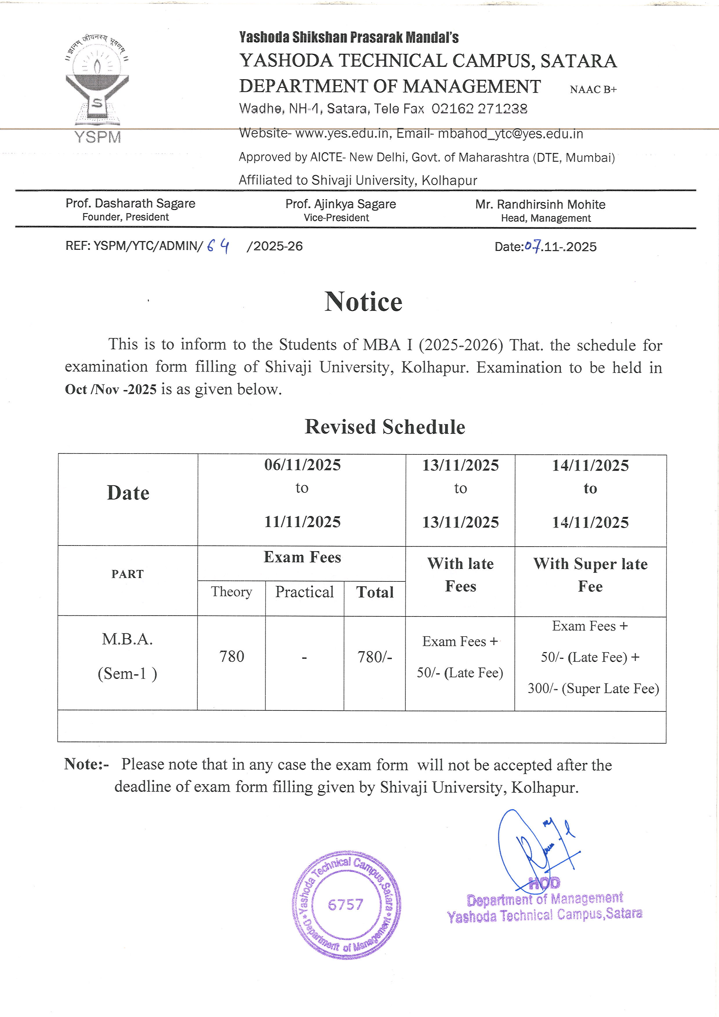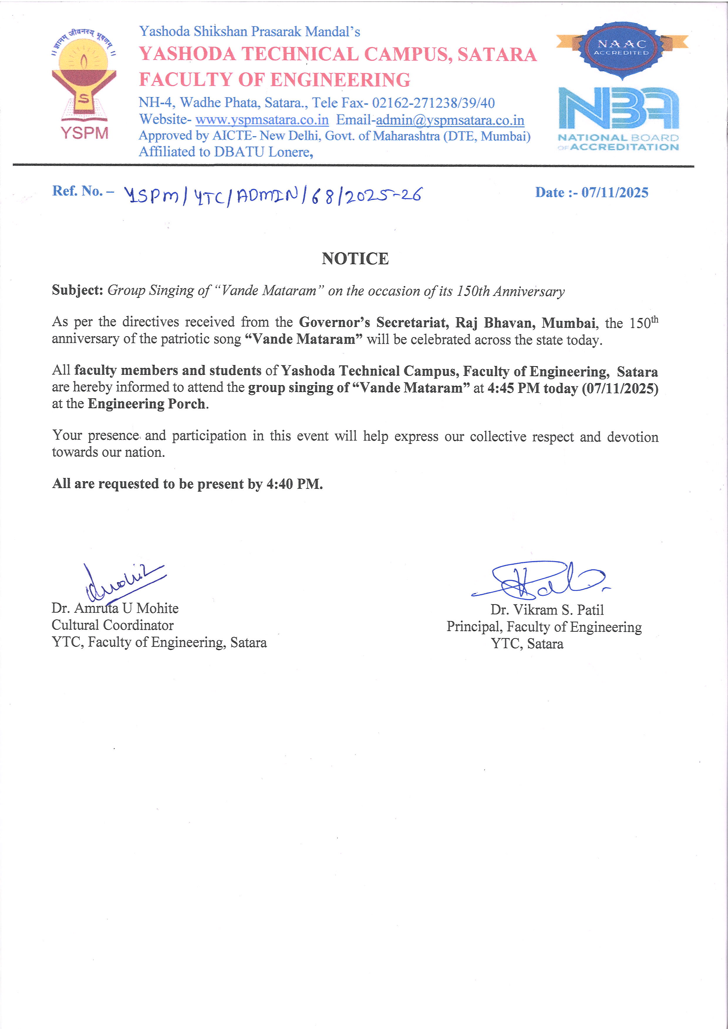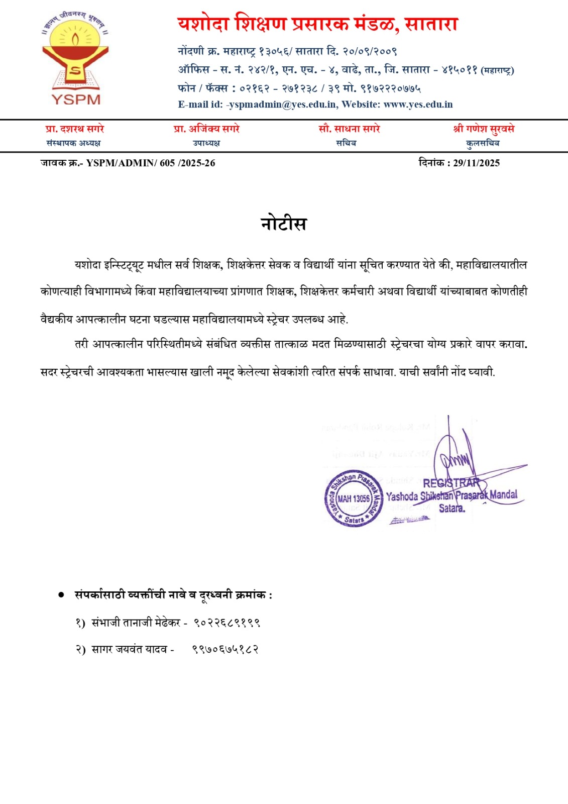 लेखी परीक्षा यशोदा टेक्निकल कॅम्पस इंजिनिअरींग अँड पॉलिटेक्निक, सातारा या विभागामध्ये होणार आहे त्याबाबत.. |