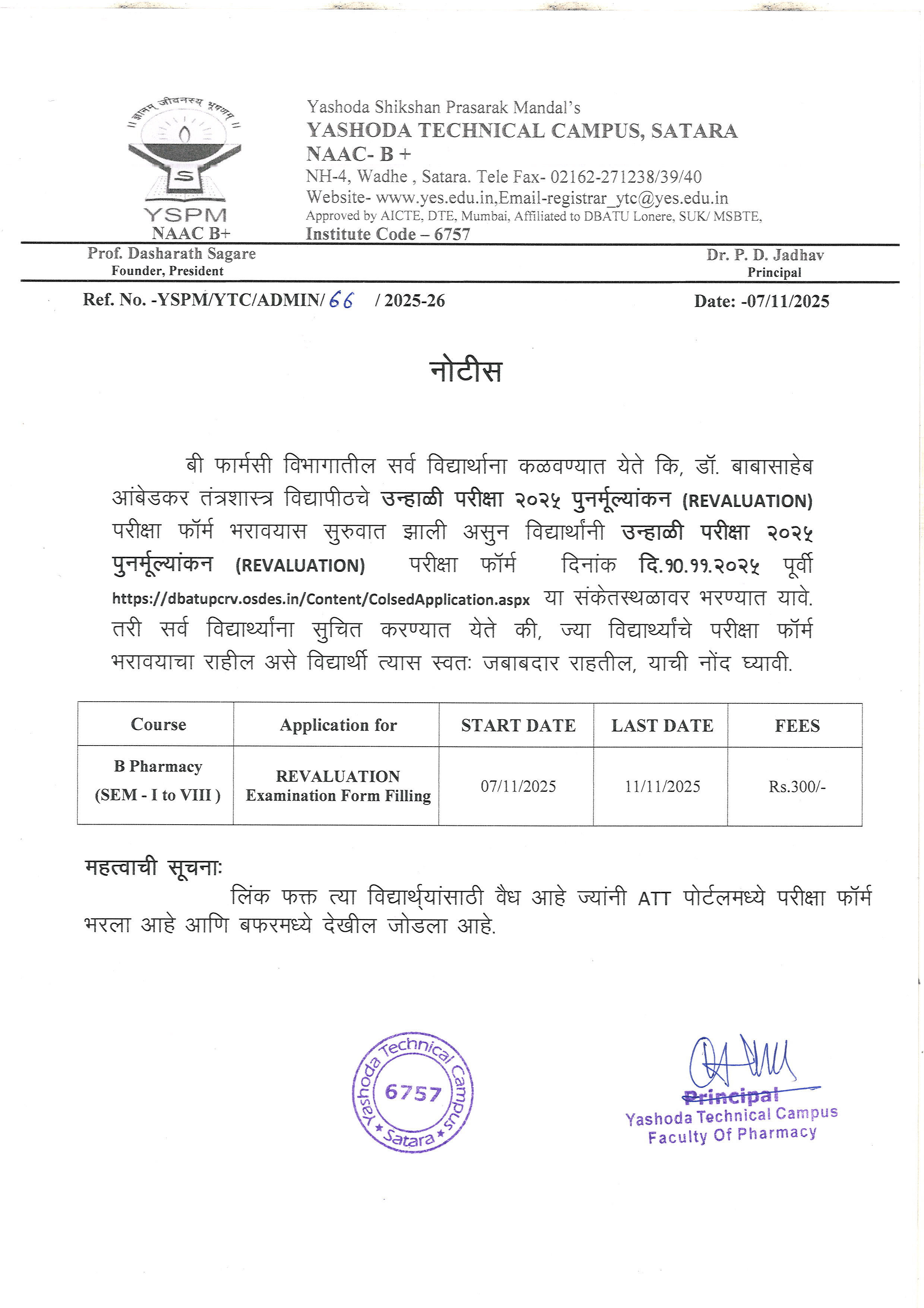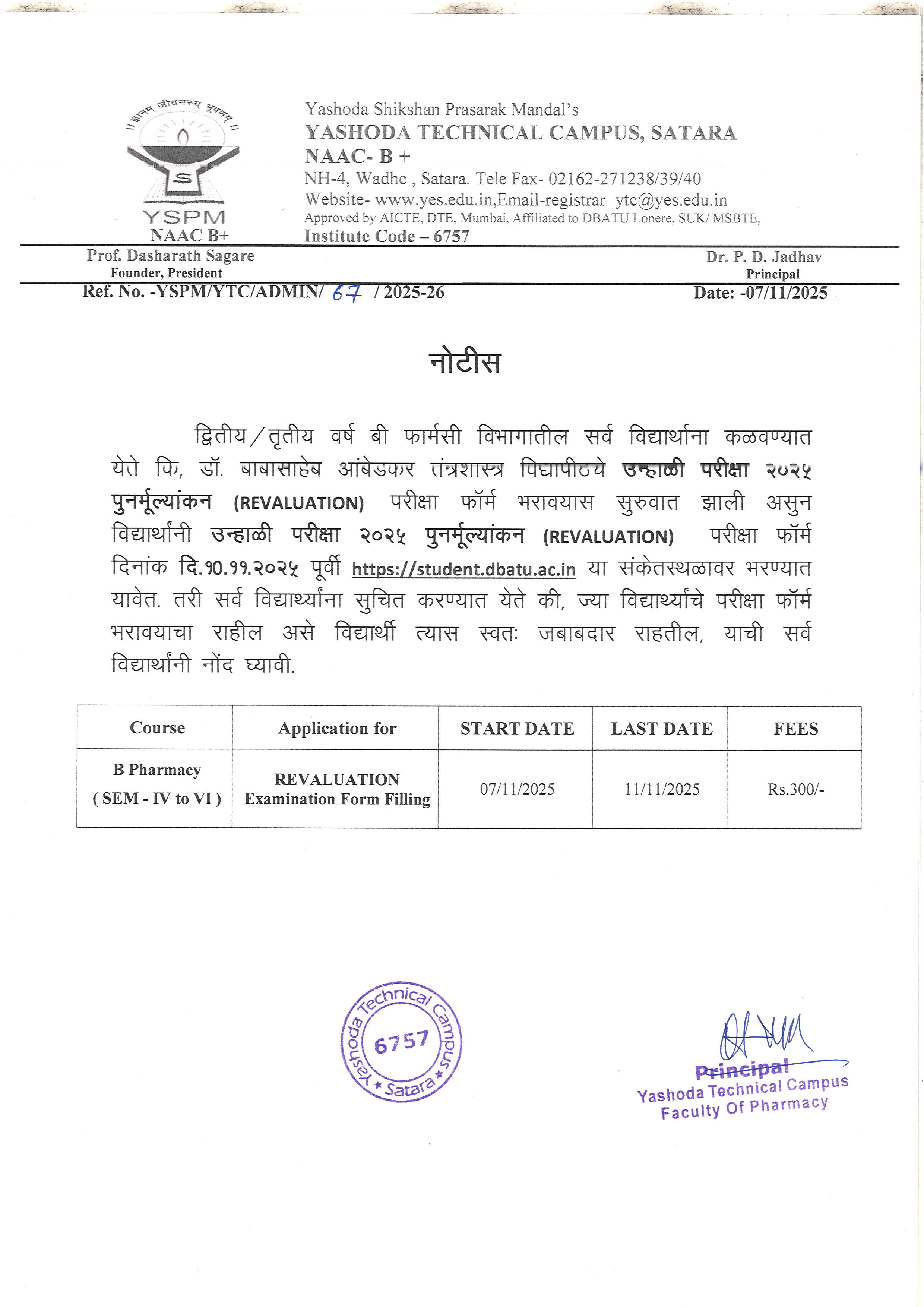 एम फार्मसी विद्याथीच्या परीक्षाबाबत नोटीस |