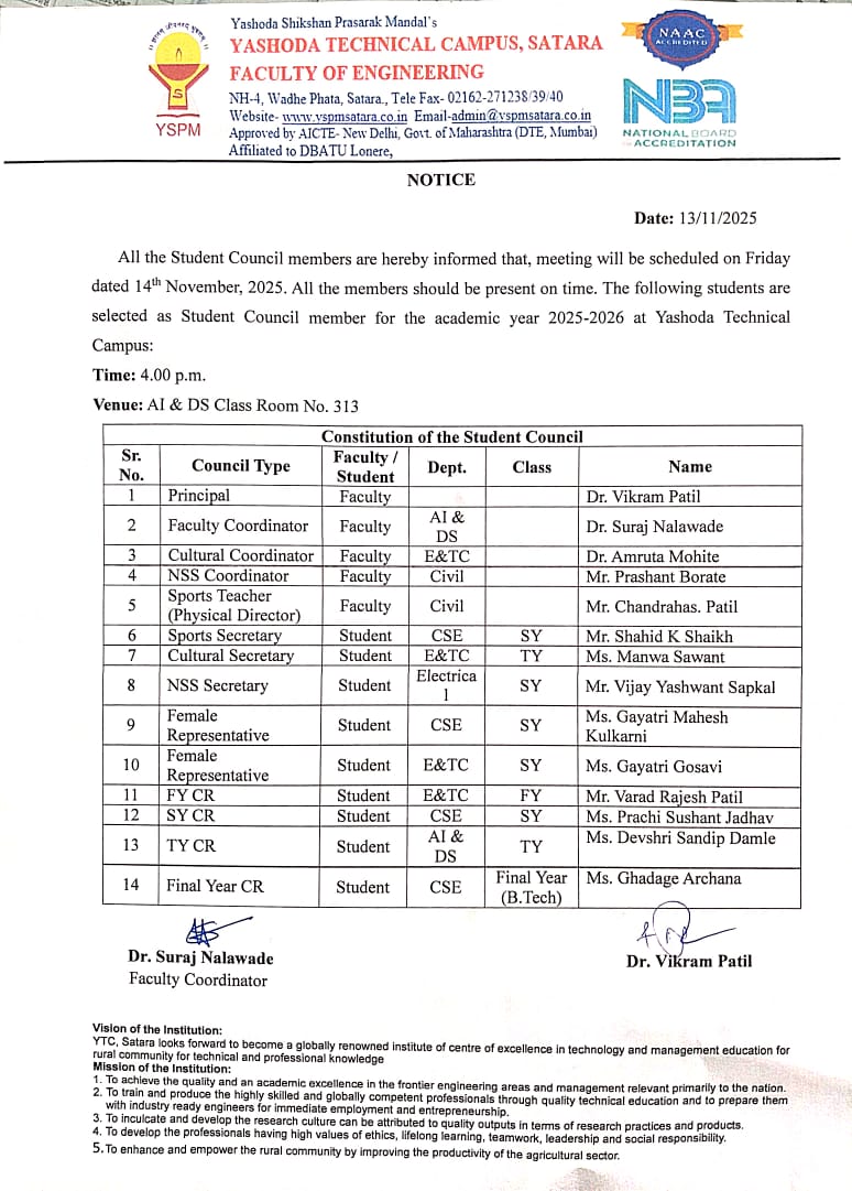 इजिनिअरिग मधील शिक्षक सेवकांना दि. ०१. ०८. २०२४ रोजी ०३.०० वाजता मिटीगबाबत |