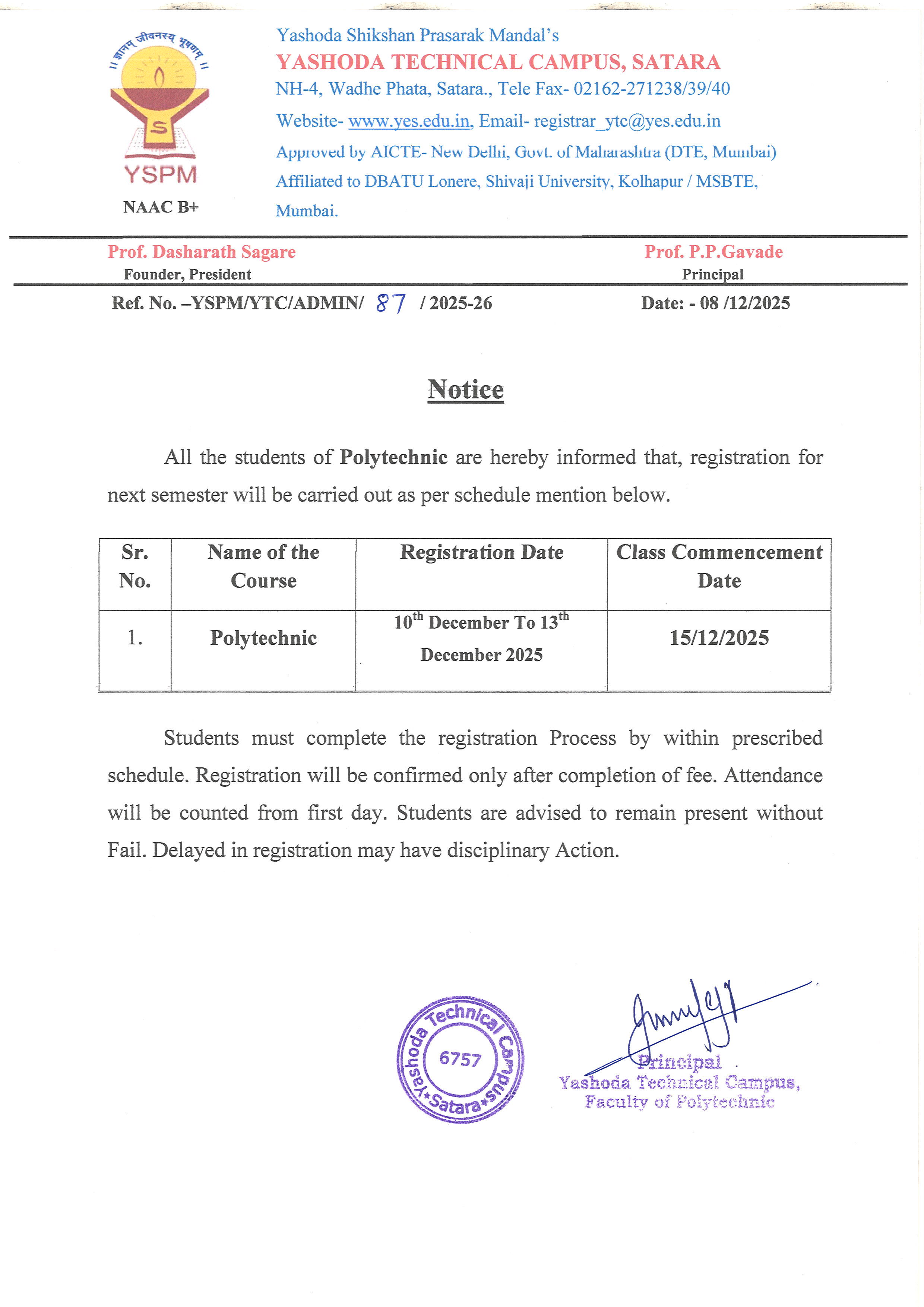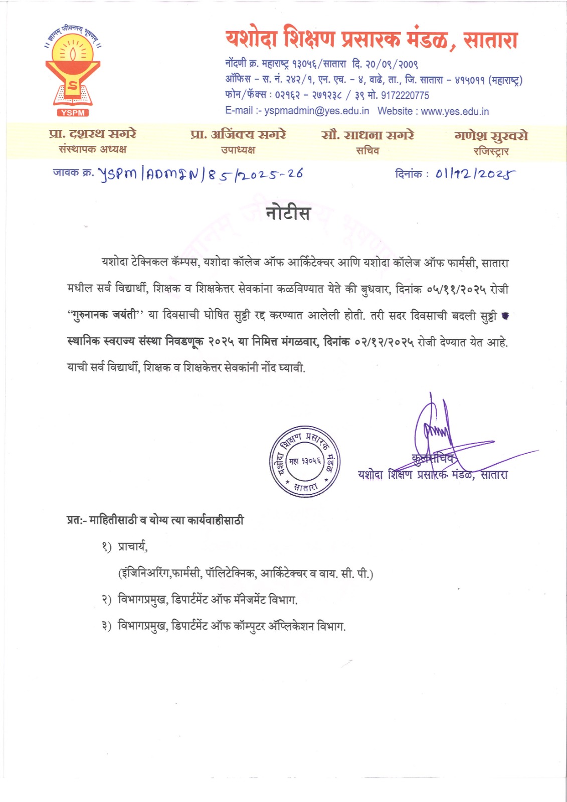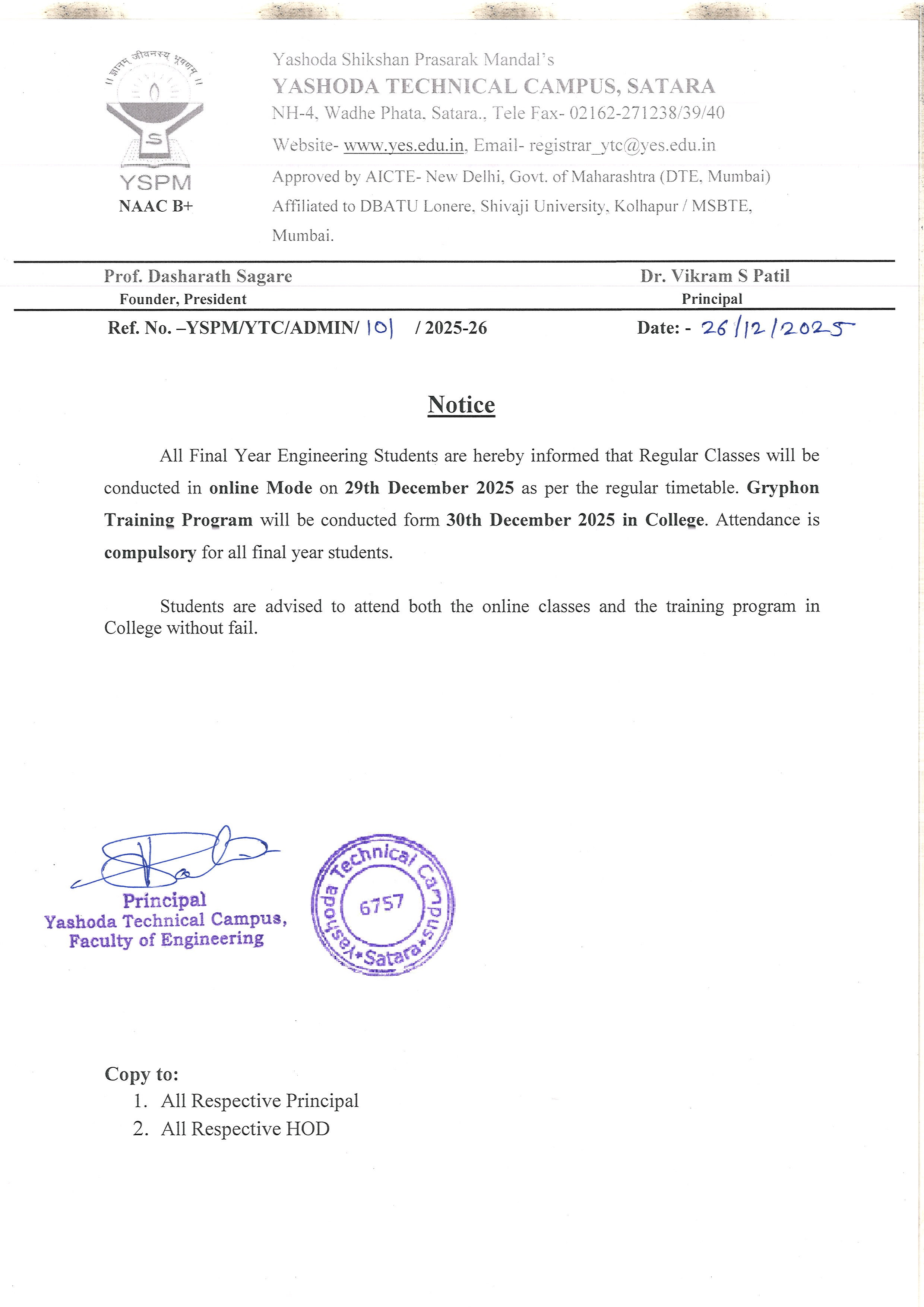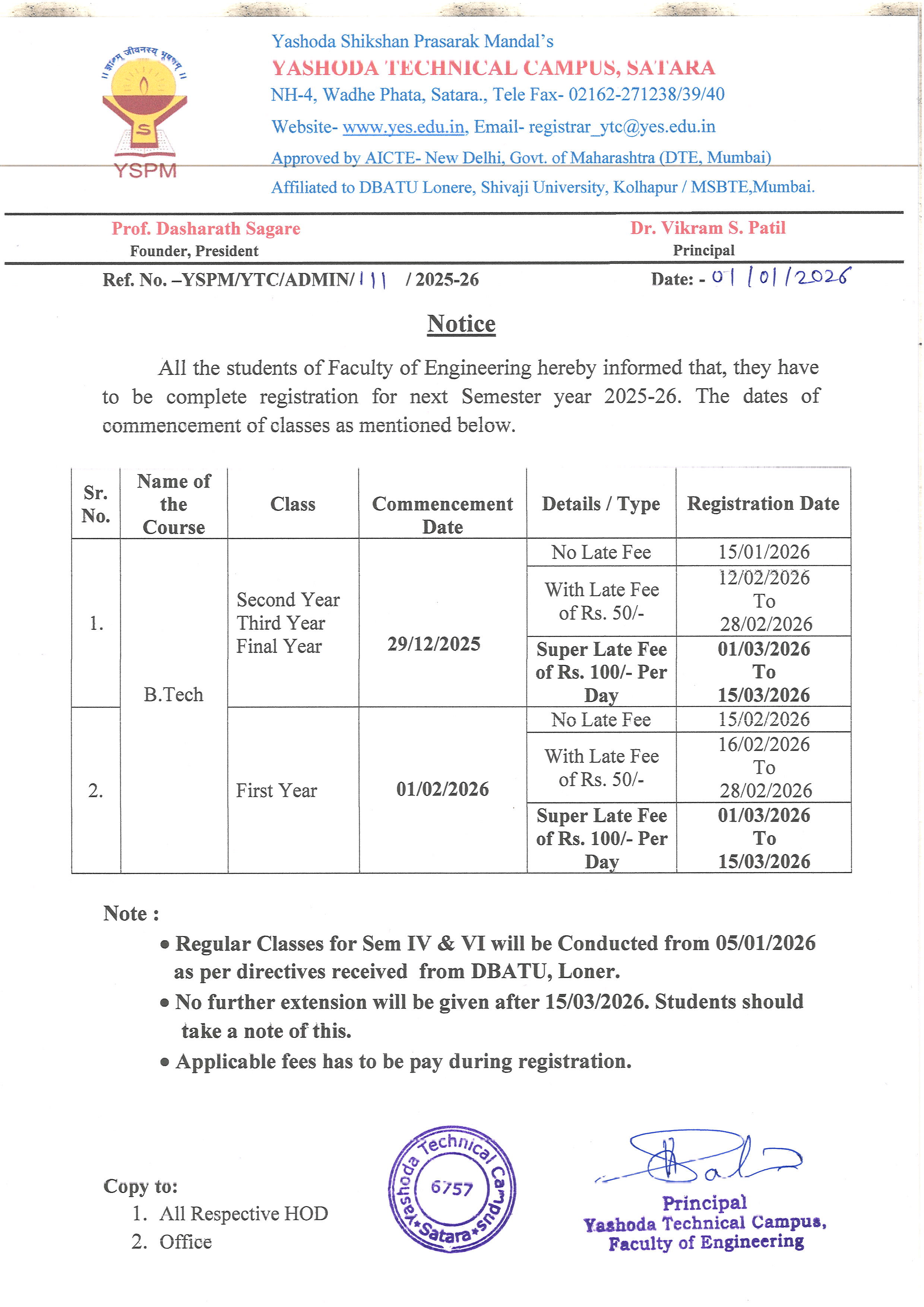 Notice - 2nd & 3rd Year Regular classes will ve conducted from 29 Dec. 2025 |