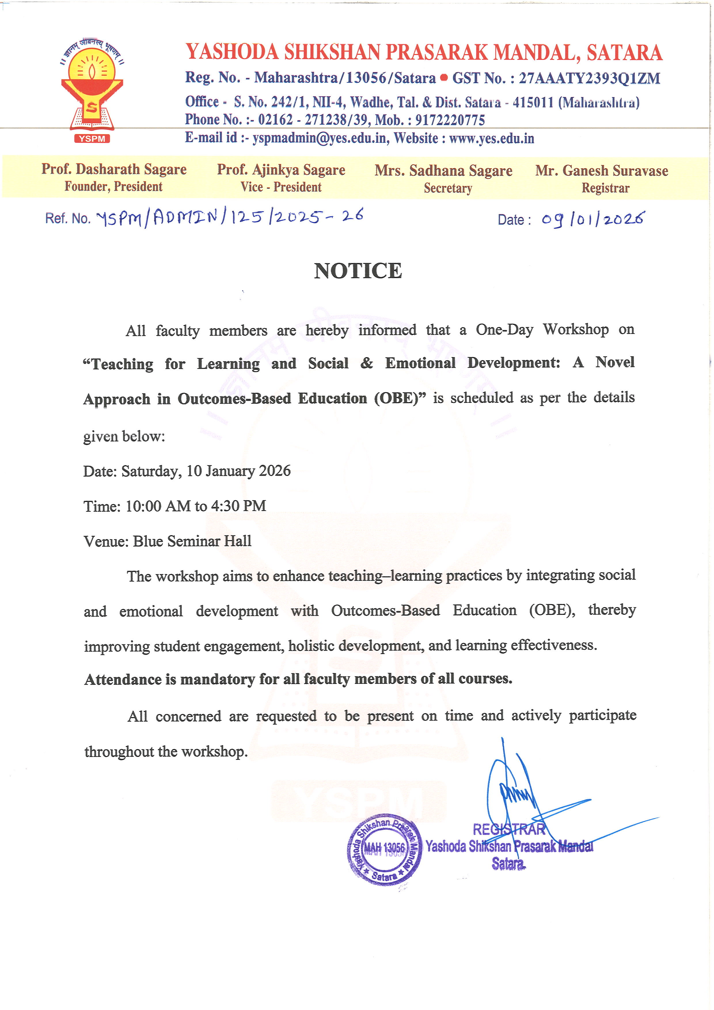 All (Teaching - Non -Teaching Staff ) YSS & YSPM |