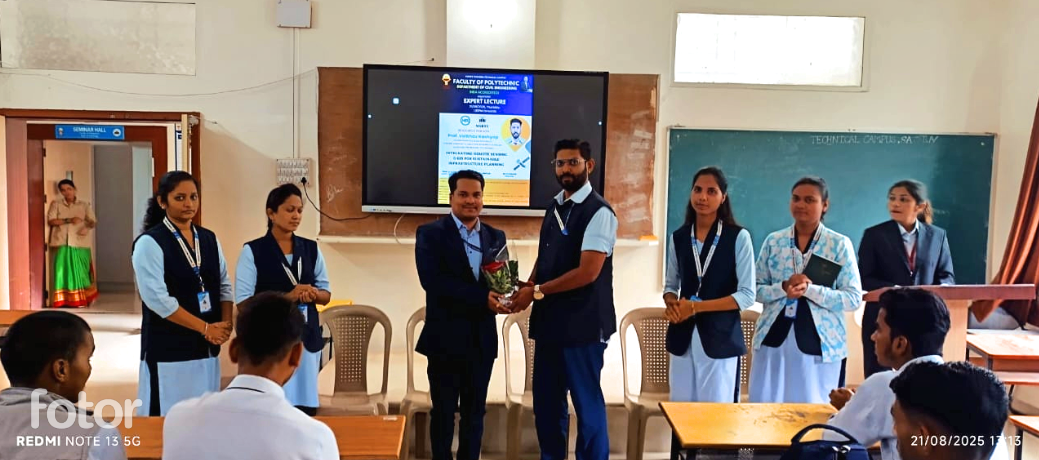 Department of Civil Engineering (Polytechnic) organized an expert lecture on 21/08/2025. Mr. Vaibhav Kashyap, Assistant Professor at Yashoda Technical Campus Satara and currently pursuing a Ph.D. in Geo-Informatics, delivered a highly anticipated expert lecture. He shared his views on Remote sensing techniques for acquiring high-resolution satellite imagery. He emphasized how combining remote sensing with GIS empowers planners to make data-driven, environmentally conscious decisions. The session concluded with a Q&A, drawing keen interest in topics like spatial data integration, predictive modeling, and policy frameworks for sustainable urban growth.