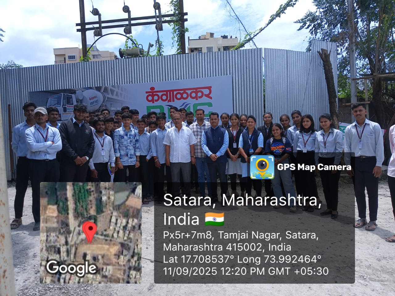 On 12th September 2025, First and second-year Civil Diploma students from Yashoda Technical Campus, Satara, visited the Kangralkar Ready Mix Concrete (RMC) Plant located in Tamjai Nagar, Satara. The industrial visit to the Kangralkar RMC Plant provided students with valuable practical knowledge, bridging the gap between theoretical studies and real-world applications in the field of civil engineering. Such experiences are instrumental in shaping future professionals equipped with industry-relevant skills and awareness.