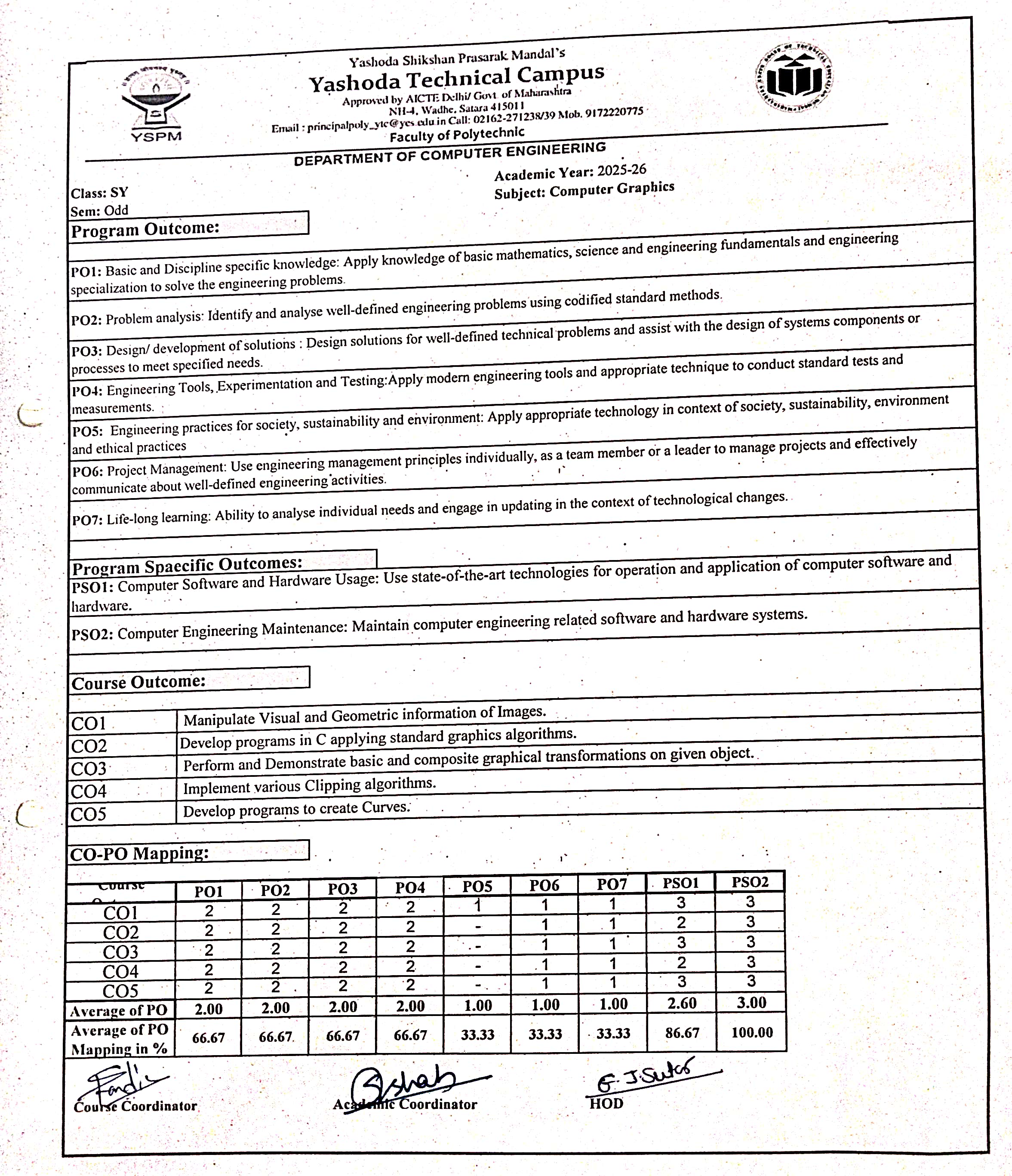 Computer Engineering (Polytechnic) CO-PO Mapping: Computer Graphics -313001 (CGR) Data Analytics- 315326 (DAN) CO PO Object Oriented Programming (OOP) CO PO OOP CO-PO MAPPING DSU CO-PO MAPPING