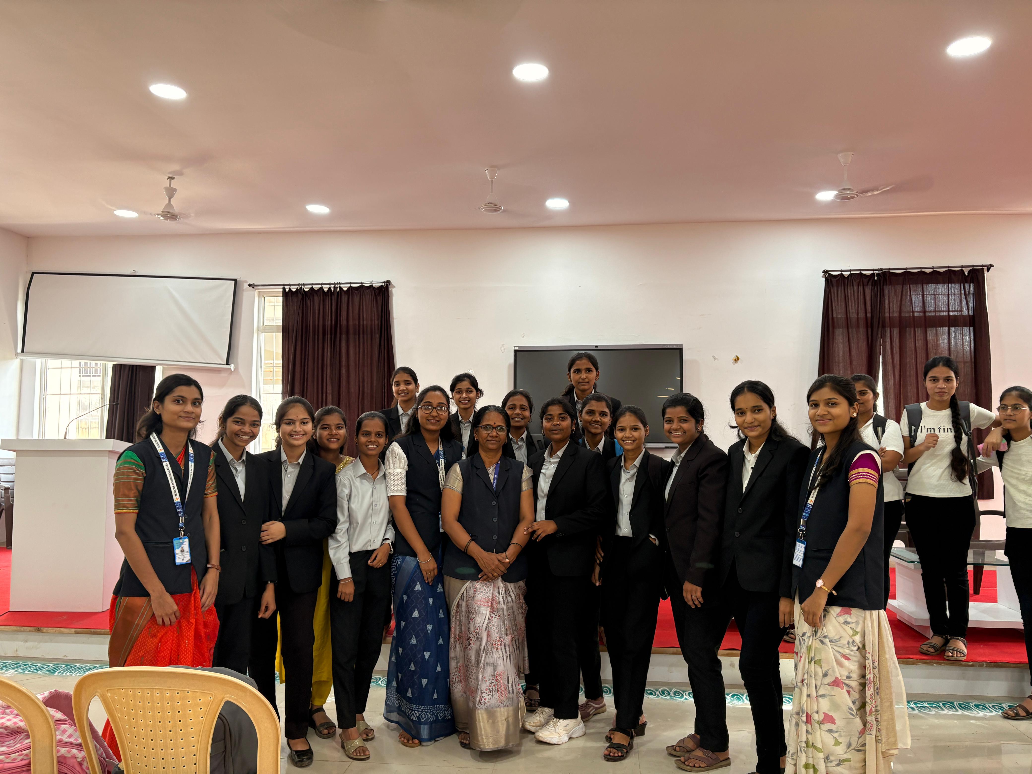 The session was conducted by Ms. Priyanka Hingane, who provided valuable guidance on interview preparation, communication skills, confidence building, and professional etiquette. She discussed various stages of the interview process and shared effective strategies for answering common technical and HR questions.